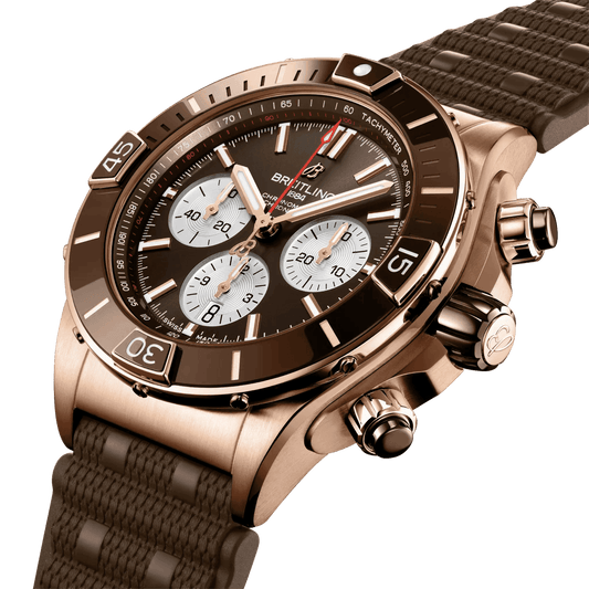 BREITLING Super Chronomat B01 44, Red Gold case, Brown dial, Rubber strap