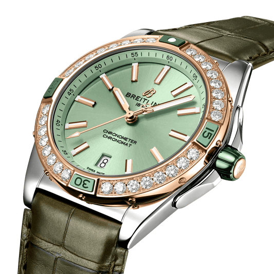 BREITLING Super Chronomat Automatic, 38mm Stainless steel & Red gold, Green dial, Leather strap