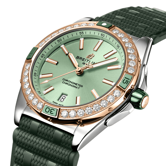 BREITLING Super Chronomat B01 44mm, Stainless Steel & Red Gold case, Green dial, Rubber strap